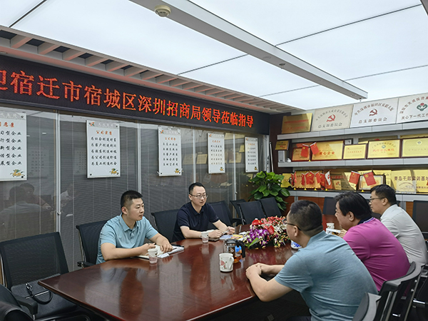 2022年6月28日,江苏省宿迁市宿城区深圳招商局局长刘飞、宿迁市宿城区深圳招商局二分局局长熊威一行莅临我商会考察指导。鲁商联盟会常务副会长、广东省山东商会常务副会长兼深圳会长、广东省异地商会联合会执行会长、深圳市齐鲁文化研究会会长孙明高,我商会副会长王正凯、驻会秘书长尹兆杰热情接待刘飞局长一行,并展开座谈交流。