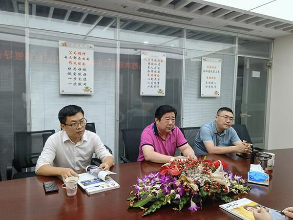 会上,孙明高会长首先向刘飞局长一行表示热烈欢迎,并就鲁商组织、文化组织、深商组织、异地商会四大组织平台建设情况,以及“圈链会盟”四大业务平台的发展情况与刘飞局长进行沟通交流。