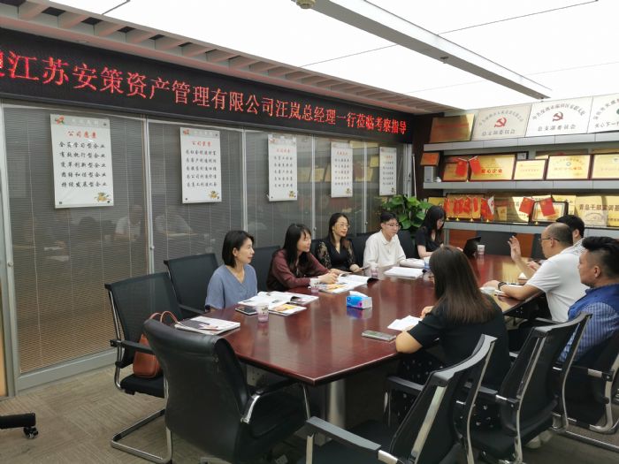 随后,汪岚总经理介绍了江苏安策资产管理公司的基本情况。汪岚总经理表示,希望与商会多沟通、多交流,合作共赢,携手共进,共创未来。随后,双方就拟合作项目进行了深入探讨。