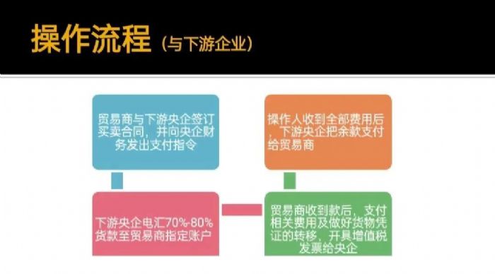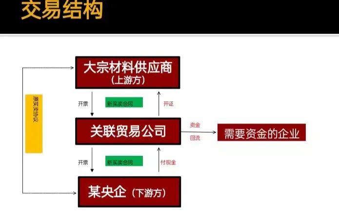 我们通过央企贸易链---实景贸易的模式,把取得银行综合授信又有敞口的企业实现现金,用真实贸易背景,解决融资问题。