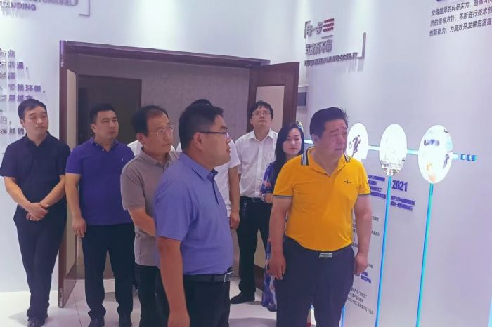 在山东瑞福锂业有限公司,孙明高会长一行参观考察了展示厅,详细听取企业介绍,深入了解企业发展历程、经营环境、市场前景等情况。