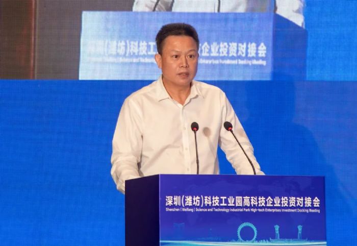深圳科技工业园(集团)有限公司党委书记、董事长,深圳市产业园区发展促进会会长何景成在致辞中指出,自去年 10 月份深圳(潍坊)科技工业园落地潍坊经济开发区以来,得到了潍坊市委市政府和潍坊经济开发区党工委、管委会的高度重视和大力支持,切实感受到潍坊给予园区的“三个高服务理念”。今天的深圳(潍坊)科技工业园是干事创业的热土、投资兴业的沃土,是科技企业入鲁发展首选地。希望参会企业能够在深圳(潍坊)科技工业园投资兴业,共享发展机遇,共创美好未来。