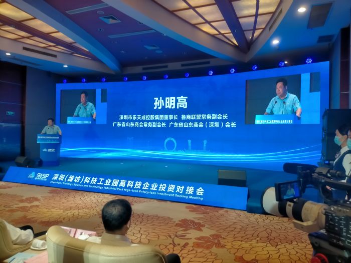 2022年9月29日,深圳(潍坊)科技工业园高科技企业投资对接会在潍坊新富佳悦大酒店会议中心成功召开。深圳科技工业园(集团)有限公司党委书记、董事长,深圳市产业园区发展促进会会长何景成;深圳科技工业园党委委员、副总经理谢建朋;潍坊市政府副市长,寒亭区委书记、潍坊经济开发区(农综区核心区)党工委书记滕双兴;王勇、冯涛、王永刚等领导出席会议。鲁商联盟常务副会长兼大湾区鲁商工委主席、广东省异地商会联合会执行会长孙明高,我商会外联部秘书长兼智能制造分会会长、深圳市慧涛智能科技有限公司董事长孙勇涛,我商会常务副会长兼信息化分会会长、深圳市云易智慧科技有限公司董事长程伟,我商会金融分会副会长付在民,我商会常务副会长、深圳市山东莱州商会执行会长、深圳莱商控股集团董事长蔡逸一行等17家企业代表出席会议。