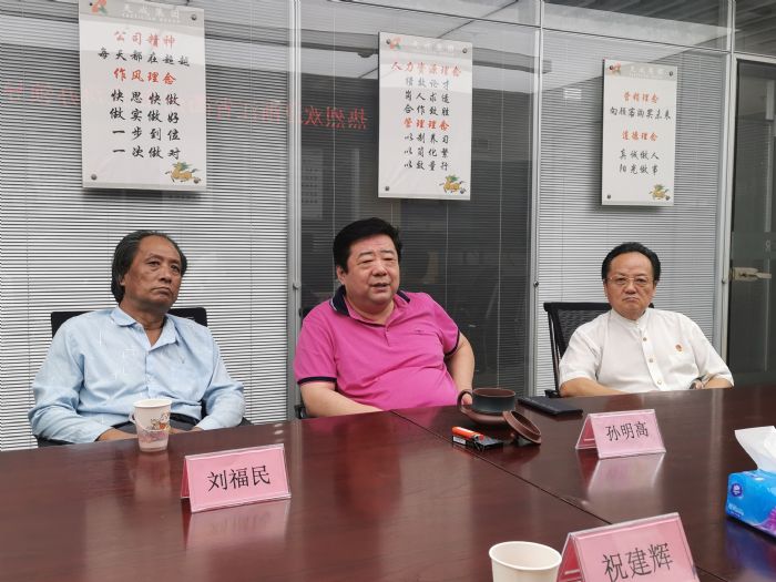 孙明高会长首先向熊伟一行的到来表示热烈欢迎,并从鲁商组织、文化组织、深商组织、粤商组织、中国振兴乡村产业联盟五大方面介绍了内引外联、合纵联横的框架体系,以及商会二十多年来,以及为会员、为政府、为社会、为产业服务的业绩成果。