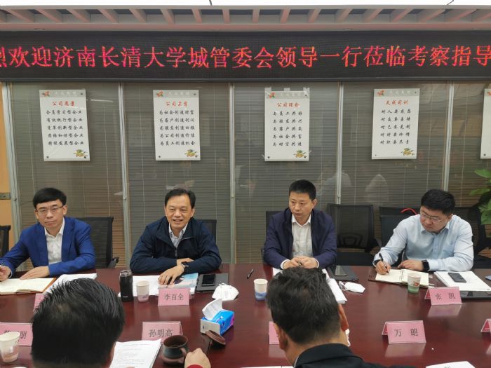 2023年2月7日,济南长清大学城管委会副书记、副主任李百全,济南长清大学城管委会综合保障部部长焦玉铭,济南长清大学城管委会投资促进部部长李开龙,山东济清控股集团公司副总经理张凯莅临我商会考察交流。鲁商联盟会常务副会长、广东省山东商会常务副会长兼深圳会长、广东省异地商会联合会执行会长、深圳市齐鲁文化研究会会长孙明高热情接待李百全副书记一行,并展开座谈交流。