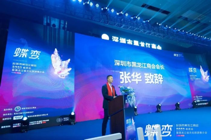 黑龙江商会会长张华致辞,他表示:“回首商会的历程,我们历经诸多机遇和挑战,也感受到了前行的力量。商会将持续促进经贸交流与合作,进一步凝聚在深龙江籍企业家的力量,共同浇筑合作的坚实基座,助推龙江经济高质量发展,永葆龙商互助互帮精神品质。2023年将是卓有成效的一年,全体龙商人奋发有为,蓄势待发,共同迎接蝶变的华丽转身”。