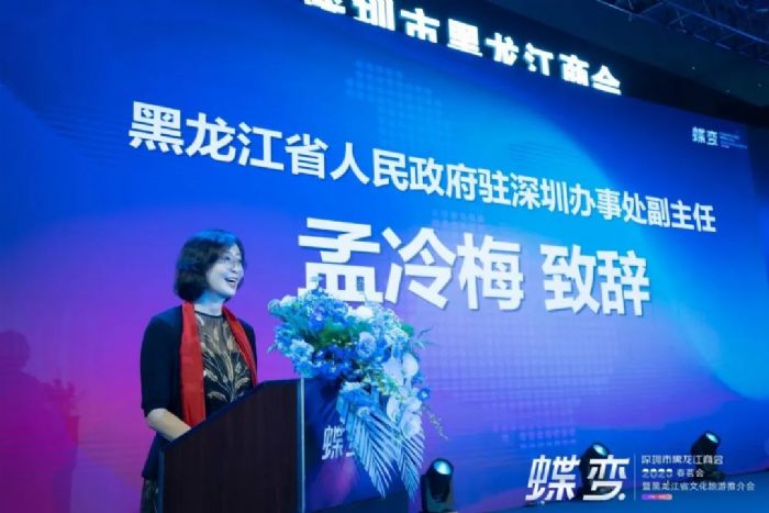黑龙江省人民政府驻深圳办事处副主任孟冷梅致辞,她表示深圳市黑龙江商会为在深龙江人提供了温暖的港湾,浓浓桑梓情,拳拳赤子心。无论走得多远,家乡永远是每一位游子心中最割舍不掉的牵挂,希望我们的乡情之花常开,商人之果常甜,商会之树万古常青,最后相信深圳市黑龙江商会在张华会长带领下越办兴旺。