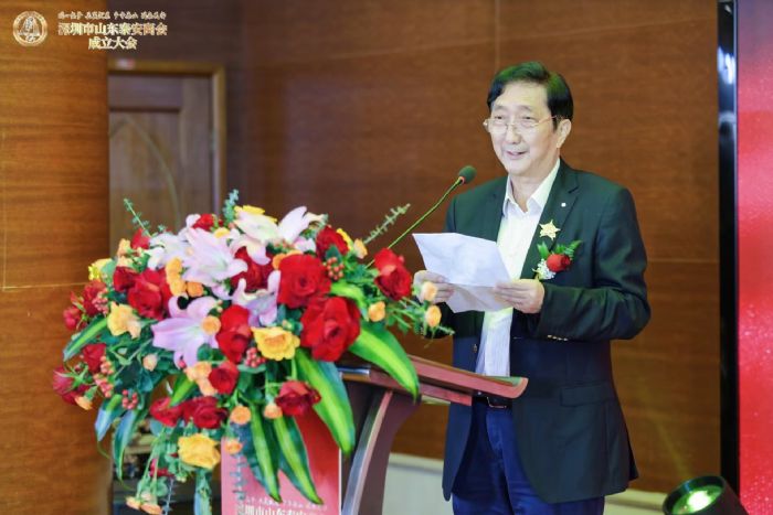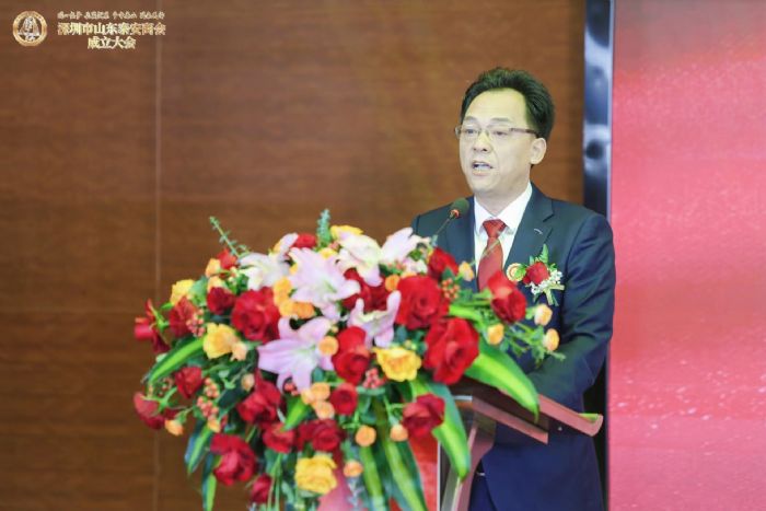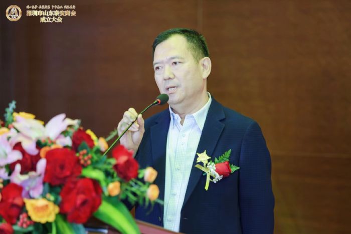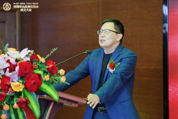 ▲山东省鲁商联盟会常务副会长兼粵港澳大湾区鲁商工委主席、广东省山东商会常务副会长兼深圳会长孙明高致辞