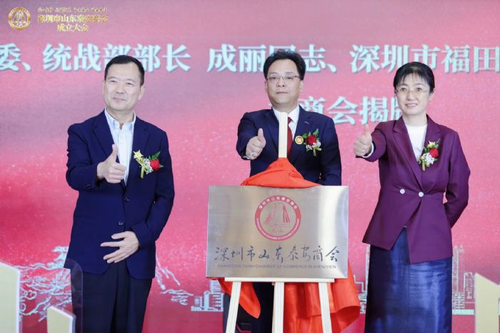 会上,泰安市委常委、统战部部长成丽,深圳市福田区一级巡视员李振河主任为深圳市山东泰安商会揭牌,宣布深圳市山东泰安商会正式成立。泰安市委常委、统战部部长成丽,泰安市委统战部副部长、泰安市工商联党组书记、常务副主席李培国,深圳市山东泰安商会会长薛传江分别为当选的名誉会长、副会长、理事、会员授牌。