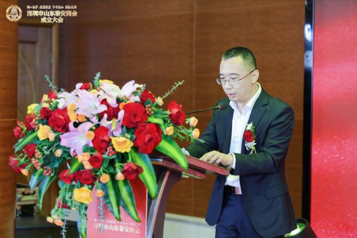 孙明高会长代表山东省鲁商联盟会、粤港澳大湾区鲁商工委、广东省山东烟台商会,以及在座的深圳市山东淄博、菏泽、烟台、青岛、威海、莱州等众多地市级商会同志们,对深圳市山东泰安商会的成立表示热烈祝贺。在致辞中,孙明高会长说道,泰安人“五讲四美”,“五讲”即讲规则、讲道德、讲感情、讲义气、讲奉献,“四美”即白菜美、豆腐美、水美、泰山美。孙明高会长希望,在深发展的泰安人手拉手、心连心、同呼吸、共命运,共同携手讲好泰安故事,搭建好粤鲁两地的桥梁和纽带,塑造好泰安品牌,为推动泰安市和山东省的高质量发展做出应有的贡献。