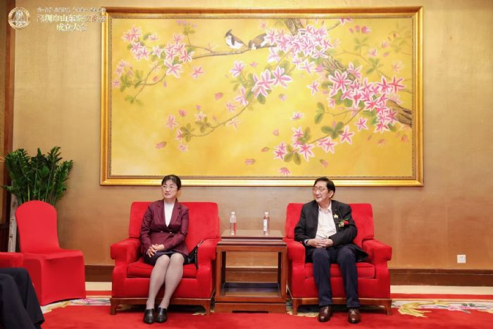 交流中,孙明高会长代表山东省鲁商联盟总会、粤港澳大湾区鲁商工委、广东省山东烟台商会对成丽部长一行的到来表示欢迎,向泰安市统战部长期以来对在粤、在深老乡的关心和慰问表示感谢,并简要介绍了商会的组织建设情况,汇报了我商会近年来取得的佳绩。