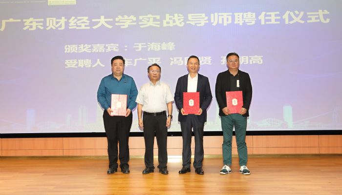 随后,于海峰校长为孙明高会长、车广平董事长、冯国贤董事长三位企业家颁发实战导师聘书,刘延平院长、张鹏程书记、吴兆君总经理为“寻找粤商商脉”活动获奖学生颁发获奖证书。