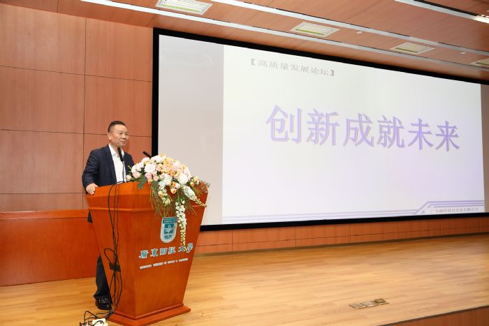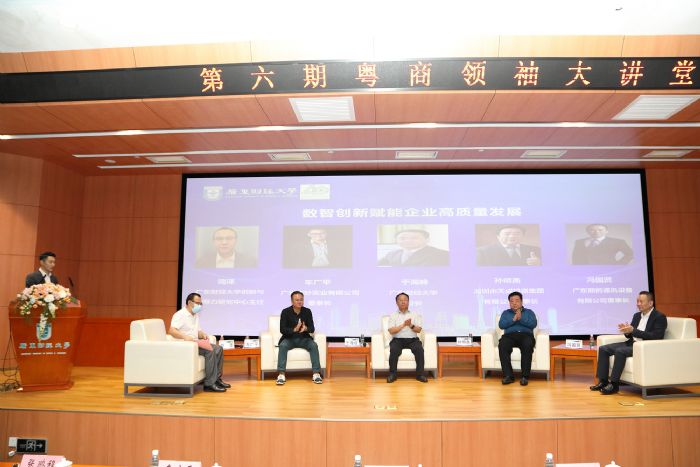 演讲结束后,于海峰校长对三位企业家的演讲做了精彩点评。他高度赞扬了三位粤商领袖在面对数智化时代的竞争与环境变化中所展现出的新作为与新担当,并指出学校在人才培养方面也在进行数智化转型,通过打造定制化金融科技班、数字金融实验室、成立数字经济学院等方式进行人才培养的转型和素质提升,帮助学生更好地适应经济社会发展的需要。