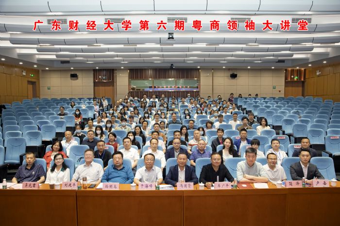 2023年5月7日上午,第六期粤商领袖大讲堂在广东财经大学举办,广东财经大学校长于海峰,大学工商管理学院粤商学院院长刘延平,大学校团委书记张鹏程,“南岭学者”杰出人才简泽,广州依妙实业有限公司董事长车广平,广东丽的通讯设备有限公司董事长冯国贤,鲁商联盟会常务副会长、广东省山东商会常务副会长兼深圳会长、广东省异地商会联合会执行会长、深圳市齐鲁文化研究会会长孙明高,广州万仕利餐饮集团总经理吴兆君以及20多家省内知名企业代表齐聚广财,以“数智创新赋能企业高质量发展”为主题展开了精彩的研讨。工商管理学院粤商学院150余名师生参加了会议,本次会议由工商管理学院粤商学院副院长卢岳主持。
