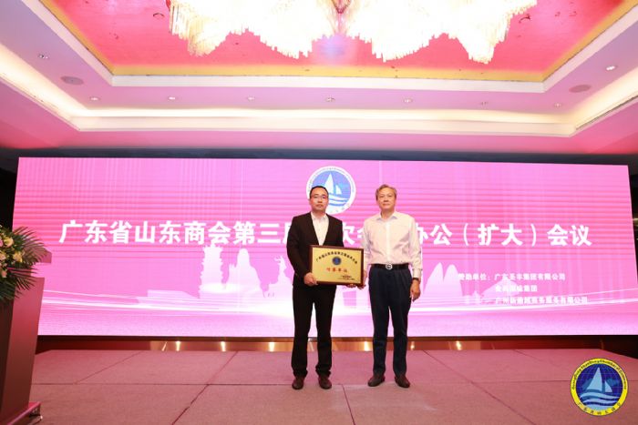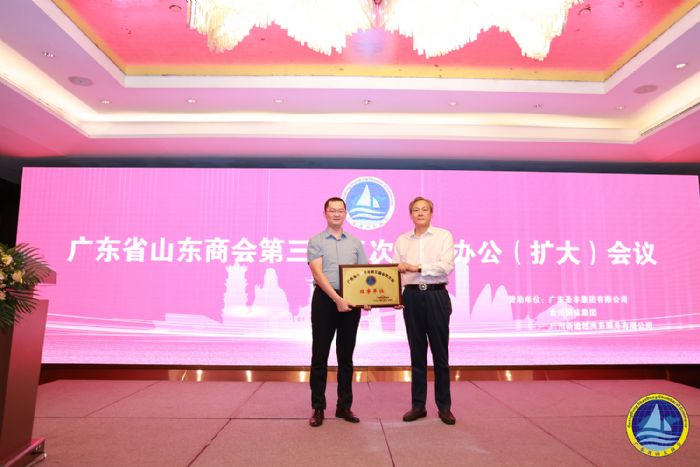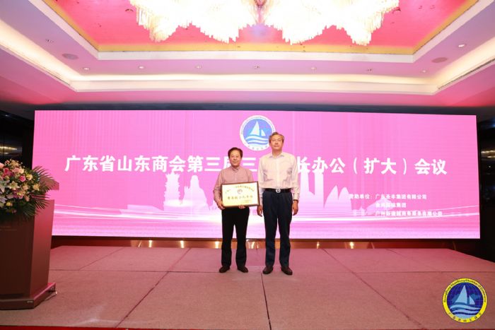 会上,研究通过了新增选的常务副会长、副会长、理事。韶关市山东商会会长、紫轩葡萄酒韶关浈江区专卖店总经理孙有军任常务副会长,广东华地农业科技有限公司总经理刘科学任副会长,广东蔚莱生物科技有限公司总经理孙凤刚任副会长,河源市达顺建材有限公司总经理韩正山任副会长,广州百盛家具制造有限公司总经理王丽任副会长,广东英坤杭新能源有限公司总经理付衍华任副会长,广东鑫耀沃工程机械有限公司总经理李杰任理事,嘉果实业投资(广州)有限公司总经理于连杰任理事。江南会长为新当选的常务副会长、副会长、理事颁发牌匾。