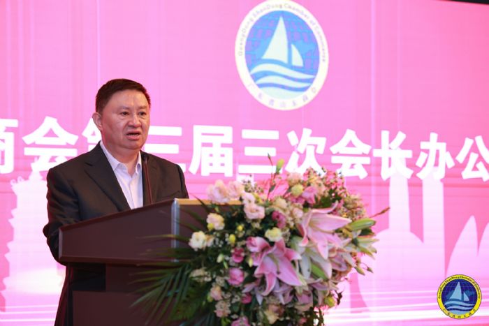 会上,江南会长还提出三点希望:一、去年,中央召开经济工作会议,要求切实落实“两个毫不动摇”,必须亮明态度,毫不含糊。“两个毫不动摇”,一是毫不动摇巩固和发展公有制经济;二是毫不动摇鼓励、支持、引导非公有制经济发展。民营经济贡献了50%以上的税收,60%以上的国内生产总值,70%以上的技术创新成果,80%以上的城镇劳动就业,90%以上的企业数量。希望我们在座的各位民营企业家,都要坚定信心,撸起袖子、铆足干劲、加快发展,创造最佳效益。二、我常说,打铁还需自身硬,企业是商会的基础,要充分发挥各企业的优势,只有企业发展好了,商会才能发展的更强大。习近平总书记今年4月份亲临广东视察时,赋予粤港澳大湾区“新发展格局的战略支点、高质量发展的示范地、中国式现代化的引领地”新的使命定位。广东举全省之力推进粤港澳大湾区建设,奋力推进中国式现代化的广东实践,也为全球粤商提供了前所未有的发展良机。我们在座的企业家,即是鲁商,也是粤商,希望大家要积极抢抓粤港澳大湾区建设重大机遇,坚持实体经济为本、制造业当家,敢闯敢试、创新创造,做新时代的实干家、开拓者。三、理事会是商会工作的核心和重要力量,希望各位会长、理事要积极参与到商会的各项活动中,对商会今后工作多思考,多提好的意见和建议,相互间要加强沟通,建立起更多的横向合作的机制,寻找更多共同的契合点,形成合力,共同发展,不断提升商会的影响力、号召力、推动力、凝聚力。同时,也希望大家对商会秘书处的工作多给予支持,秘书处的同志们要继续做好各方面工作,建立起与会员联络的各种渠道,充分发挥会员的作用,服务好各位会员,实现好商会高质量发展!我相信商会在理事会的带领下,我们山东商会会更加扎实办会,擦亮鲁商品牌,扩大商会影响力,全力打造一流商会品牌,力争今年实现5A级商会。