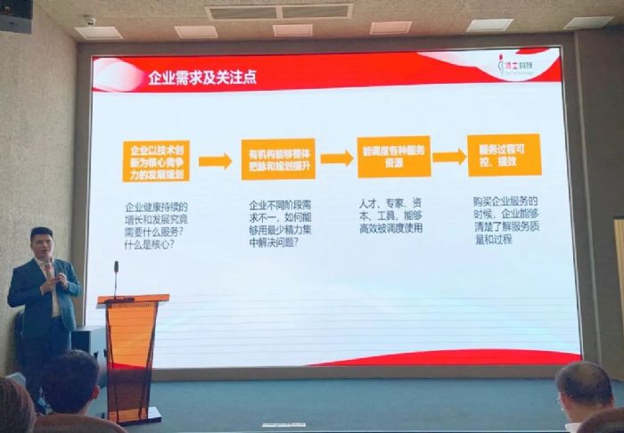 博行科技联合创始人、博士科技商学院导师、创新服务联盟联合策划人梁登文作主题分享。他从科技服务业相关趋势出发,分析政府、企业、服务机构需求及关注点,阐述了创新服务联盟定位,并表示创新服务联盟的作用是联盟和机构的协同,通过专业化分工和链条式闭环服务满足企业发展过程中的需求,助力企业高质量发展。
