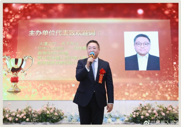 随后,香港特别行政区第十四届全国人大代表、孙中山玄侄孙孙伟勇先生也发表感言,描述了以两岸三地优势互补、互利共赢、深化合作,让两岸三地的发展踏上更高台阶,促进香港更积极融入国家发展大局的观点,并获赠孙中山先生“大道之行”画像。