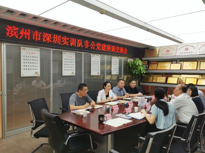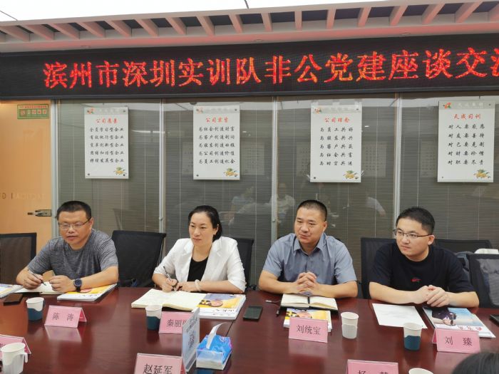 为激发非公党组织和党员的内生动力,以高质量党建助推非公企业高质量发展。2023年7月5日,滨州市深圳实训队非公党建座谈交流会在福田区安联大厦23层A03会议室圆满举行。会议特别邀请到了深圳市福田区非公有制经济组织党委党建工作部部长叶彩永、党建专员杨慧、陈亮,与四位滨州市深圳实训队员就“非公党建工作”展开深入交流。