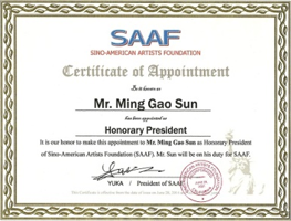 孙明高会长先后担任世界华商(非洲)联合会中非经济贸易促进会执行会长、世界关公协会名誉会长、美国中美艺术家基金会荣誉会长、美国佰老汇会员、亚太杰出企业家协会荣誉会长、全球互通精英俱乐部副理事长、深圳中非经济促进会名誉会长、德州海外联谊会名誉会长等职务,深入开展多种形式的联谊活动,促进山东与世界各地文化方面的合作与交流。