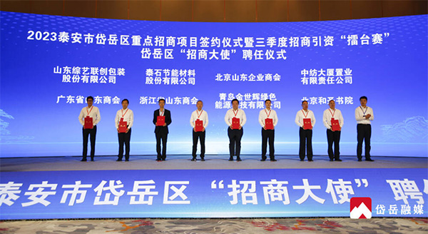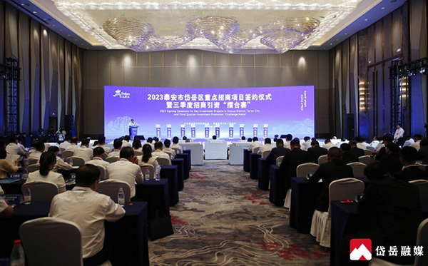 2023年9月5日上午,在第37届泰山国际登山节举办之际,2023泰安市岱岳区重点招商项目签约仪式暨三季度招商引资“擂台赛”隆重举行,签约重点项目32个,意向总投资额239亿元。