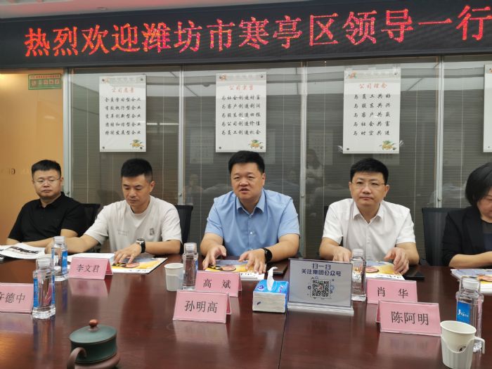 2023年10月24日,潍坊市寒亭区区长高斌、副区长肖华,潍坊经济开发区投资合作促进局局长王亭,潍坊市寒亭区投资合作促进局局长管春霞、主任韩美薇等领导一行莅临我商会考察交流。鲁商联盟会常务副会长、广东省山东商会常务副会长兼深圳会长、广东省异地商会联合会执行会长、深圳市齐鲁文化研究会会长孙明高等领导热情接待高斌区长一行,并展开座谈交流。