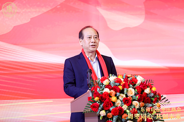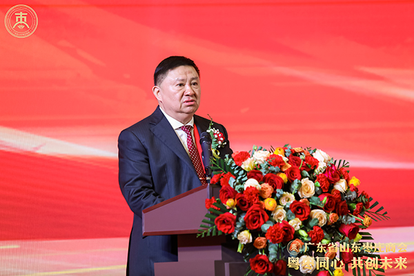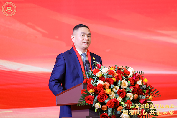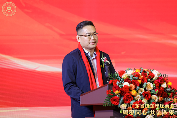 广东省山东商会周慎坤秘书长代表江南会长讲话。他说,广东省山东枣庄商会的成立也是省商会的一个分会的成立,是广东省山东商会发展中的大事,也是枣庄在粤企业家期盼已久的喜事;构筑了在粤的枣庄籍企业家们凝聚乡情和友谊的新平台,增添了当地政府与企业加强沟通联系的新纽带,扩大了交流与合作的新桥梁,同时,也预示着在粤的枣庄籍企业必将赢得又好又快发展的新机遇。广军会长是我们广东省山东商会的副会长,是一个有大爱、有情怀的人,曾经也是一名优秀的军人,现公司3000多名员工,有70%都是退伍军人,是一位非常爱国拥军的企业家,在保证企业做大做强的同时,积极参与各类公益活动,在很多方面都作出了突出贡献;在枣庄籍老乡的极力推荐下,承担起筹备、组建广东省枣庄商会的责任。接着,周秘书长代表广东省山东商会和江南会长对枣庄商会的建设和发展提出了四点建议和希望:一是强化政治引领,汇聚建功新时代的磅礴伟力;二是振奋信心力量,增强高质量发展的内生动力;三是搭建桥梁纽带,激发枣庄企业家协作的巨大潜力;四是锚定规范建设,锻造一流商会的强大实力。