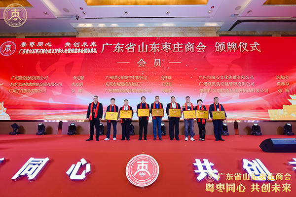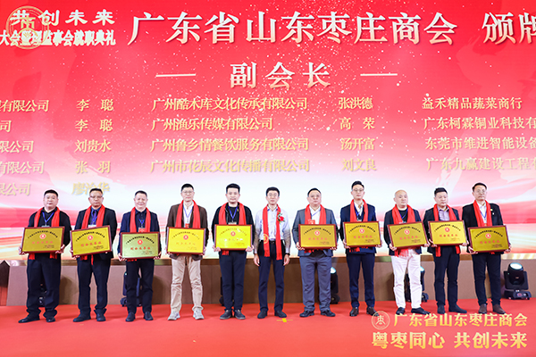 枣庄市工商联刘超副主席为广东省山东枣庄商会副会长:车哆哆李聪、安馨建设李聪、刘贵水、张羽、廖治华、张洪德、高荣、汤开富、刘文良、冯军、冯海永、张强、陈振国颁发牌匾