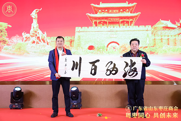 孙明高会长向广东省山东枣庄商会赠送贺礼