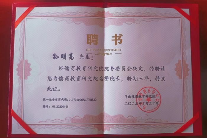 鉴于孙明高会长在商会建设、商会经营、商会创新、商会发展等方面的特殊贡献,在全国各个层次商协会的社会影响力,以及在为社会、为政府、为家乡等方面做出的突出成绩。近日,东营市烟台商会聘请孙明高会长担任高级顾问。