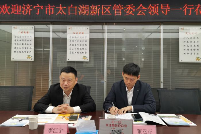 李江宁部长对商会的热情接待表示感谢,并介绍了太白湖新区的发展规划和投资优势。李江宁部长指出,太白湖新区作为济宁市的重要经济增长极之一,近年来在基础设施建设、产业发展、人才引进等方面取得了显著成效。李江宁部长表示,希望借此机会,加深与商会的联系,通过商会平台优势,寻找更多与太白湖新区发展相契合的优质项目和合作伙伴,共同推动太白湖新区的产业升级和经济发展。