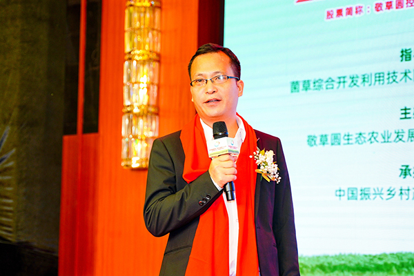 ▲敬草圆集团副总经理侯艳峰作《“小而美、惠民生”菌草》项目推介