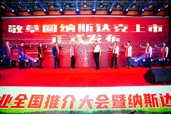 接着,敬草圆集团董事长闫文敬连同九位领导嘉宾上台,共同启动大屏幕,宣布敬草圆集团纳斯达克上市正式发布。