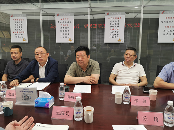 参与座谈的相关部门同志还有:烟台市河北企业家商会党支部书记、会长李伟,烟台市五金机电商会党总支书记、监事长陈玲,烟台市江苏商会党委书记宗建良,烟台市女企业家商会党支部书记孙玉芳,烟台市日照商会党支部书记、副会长赵子富,烟台市工商联非公党建办主任杨君。