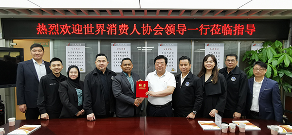 马来西亚世界消费人协会会长拿督杨国伟博士代表世界消费人协会和马来西亚国家消费人行动议会对商会的热情接待表示衷心的感谢,并介绍了世界消费人协会的基本情况。拿督杨国伟博士指出,马来西亚世界消费人协会一直致力于维护消费者权益,推动消费市场的健康发展。拿督杨国伟博士表示,希望双方能够加强沟通交流,建立共赢合作机制,实现优势互补、互联互通,为深化双边贸易合作贡献智慧和力量。