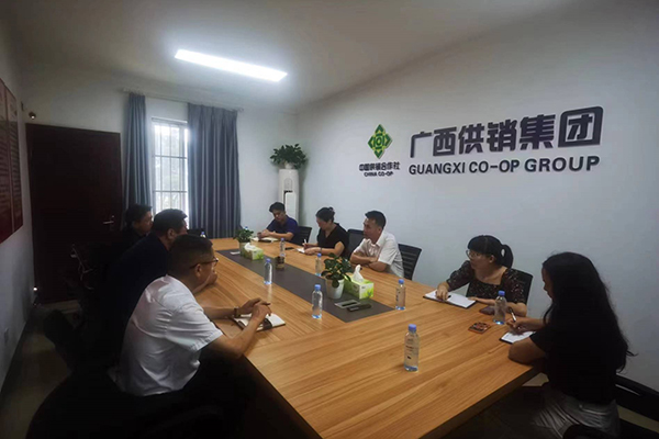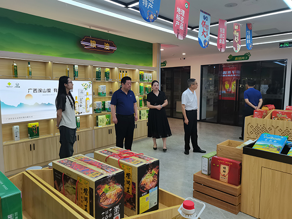 为助力广西乡村振兴,打造国内国际双循环市场经营便利,进一步促进粤桂两地优势互补产业互助,拓宽粤港澳大湾区销售渠道,全面推进乡村振兴战略。2024年6月3日,鲁商联盟会常务副会长兼大湾区鲁商工委主席、广东省山东商会常务副会长兼深圳会长、广东省异地商会联合会执行会长、深圳市齐鲁文化研究会会长孙明高,广西南宁空港康宁湖大健康产业基地总经理李镇,我商会常务副会长刘涛一行应邀到广西供销电子商务有限公司考察交流。广西供销电子商务有限公司总经理王军、广西供销电子商务有限公司运营总监姚慧、隆林慧和供应链管理有限公司总经理蒋吉权等领导热情接待孙明高会长一行,并展开座谈交流。