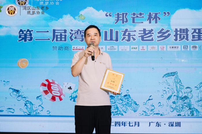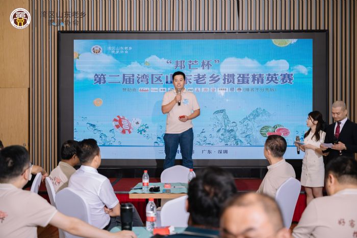 2024年7月13日,由山东省鲁商联盟会大湾区鲁商工委、广东省山东商会指导,广东省山东商会(深圳)、深圳市齐鲁文化研究会主办,广东省山东商会(深圳)掼蛋分会、深圳市齐鲁文化研究会掼蛋文化交流会(合称“湾区山东老乡掼蛋协会”)承办的“邦芒杯”第二届湾区山东老乡掼蛋精英赛在深圳市南山区若玺酒店圆满举行。本次活动筛选了五十余位掼蛋高手参赛,大家以牌会友,掼出风采。
