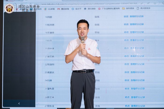 致辞最后,张川垒执行会长对湾区山东老乡掼蛋协会的价值观——“开心、专业、赋能”做了进一步的阐释。其中,“开心”是指让老乡们在忙碌之余能够享受智力竞技的快乐,愉悦身心;“专业”是指通过优秀教练指导、协会线下例训、与其他商学院、名校、商会等组织的联谊交流,提升老乡们的掼蛋水平,让老乡们在各自领域敢于掼蛋、敢于亮剑,秀出我们山东人的风采;“赋能”是指通过掼蛋交流、掼蛋认知,加深老乡们之间的感情,向潮汕人学习,努力在新时代的大湾区创造属于我们山东人的辉煌。