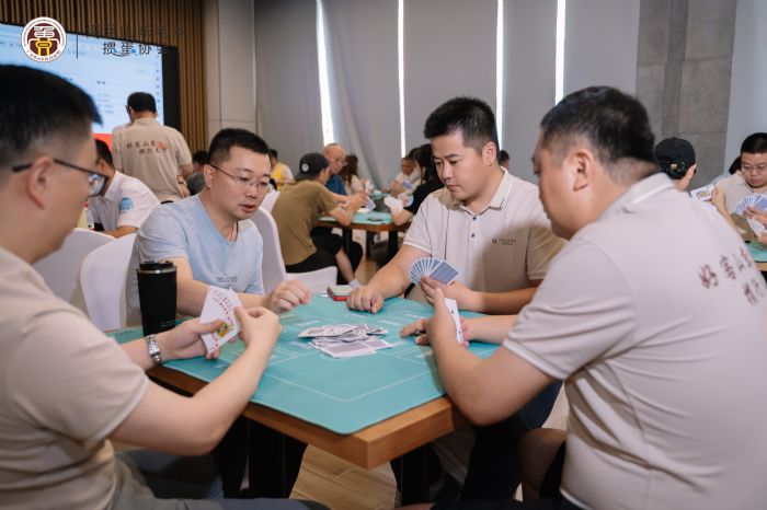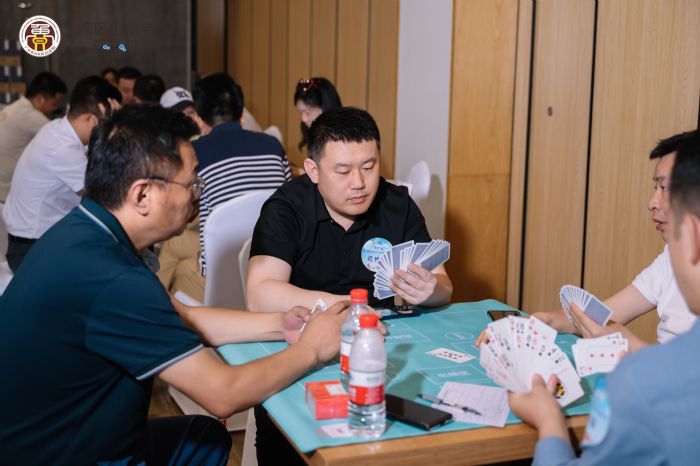 随后,本次比赛裁判长、深圳市明曜投资管理有限公司研究经理赵康杰宣读掼蛋规则,比赛正式开始。山东老乡们全神贯注地投入其中,创造了一个热烈而紧张的场景。目光专注地盯着自己的牌,并且谨慎地考虑每一步的出牌策略。