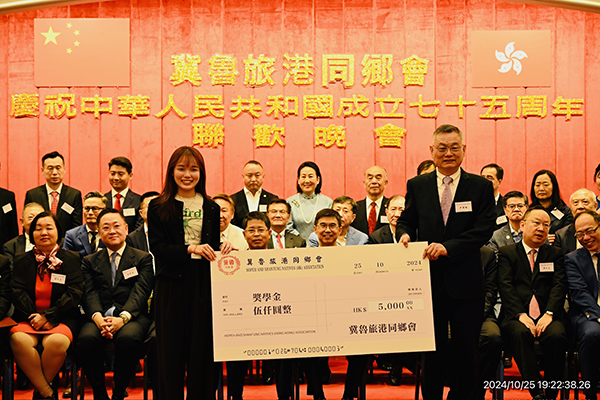 在晚宴上,冀鲁旅港同乡会会长刘兴为前理事长刘士凯、唐云龙、王云玲颁发了新任名誉会长的荣誉牌匾,以表彰他们在任期间能力卓越、对同乡会做出重大贡献,并在退任后仍心系同乡会发展的精神。此外,尹国桥理事长还为考上香港前八所大学的同乡会会员子弟颁发了奖学金,每份奖学金高达五千元,以此激励年轻一代继续努力,为家乡和祖国争光。