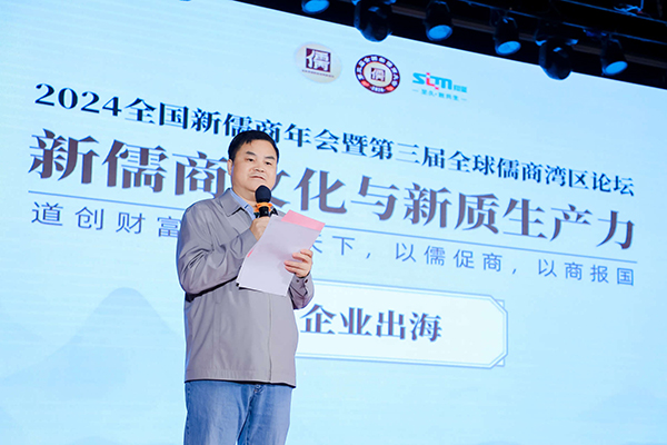 2024年11月24日上午,由全国新儒商团体联席会议秘书处指导,第三届全国新儒商年会组委会主办,广东翔蓝企业管理顾问有限公司承办,广东省山东商会、深圳市齐鲁文化研究会、佛山市山东商会协办的2024全国新儒商年会暨第三届儒商湾区论坛——新质生产力出海论坛,在广东佛山南国桃园枫丹白露酒店国一厅成功举办。此次论坛汇聚了众多企业精英、专家学者,共同探讨企业国际化发展的新机遇与新挑战,为与会嘉宾带来了丰富的思想盛宴和实践经验分享。鲁商联盟会常务副会长兼大湾区鲁商工委主席、广东省山东商会常务副会长兼深圳会长、广东省异地商会联合会执行会长、深圳乐天成控股集团董事长孙明高作为点评嘉宾出席论坛。