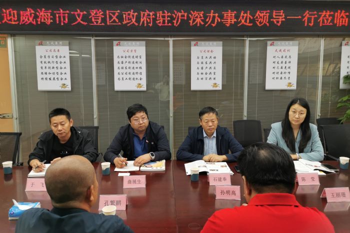 2024年11月28日,威海市文登区政府驻沪深办事处主任石建奉,副主任于飞、陈莹、曲展生一行莅临我商会考察交流。鲁商联盟会常务副会长兼大湾区鲁商工委主席、广东省山东商会常务副会长兼深圳会长、广东省异地商会联合会执行会长、深圳市齐鲁文化研究会会长孙明高,鲁商联盟会大湾区鲁商工委轮值主席兼秘书长、广东省山东商会(深圳)常务副会长、深圳市山东烟台商会会长孔繁鹏热情接待石建奉主任一行,并展开座谈交流。