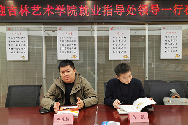 张东辉主任表达了此次考察的目的,并从招生、培养、就业三个维度介绍了吉林艺术学院的学生情况。他指出,吉林艺术学院作为一所艺术类专业院校,拥有丰富的人才资源和优质的教学资源,希望通过与商会的合作,进一步提升学校的知名度,并借助商会的资源和人脉,链接到更多有用人需求的专业对口企业。张东辉主任还邀请商会领导及企业代表前往学校进行实地考察,参与到校园招聘活动中,共同推动学生就业工作。