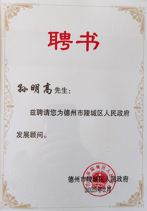 2025年2月4日,德州市陵城区人民政府正式聘任孙明高会长为发展顾问。孙明高会长以其卓越的经济管理能力、丰富的实践经验以及在国内工商界和管理界的广泛影响力,成为地方政府经济发展的重要智囊。