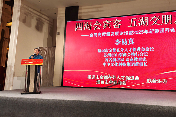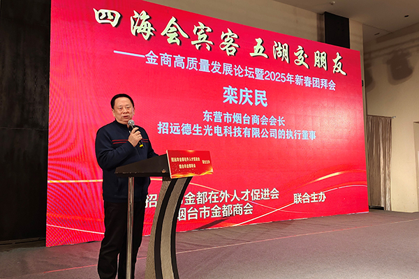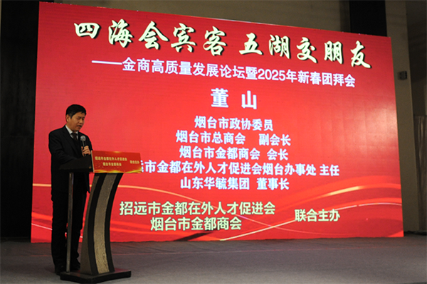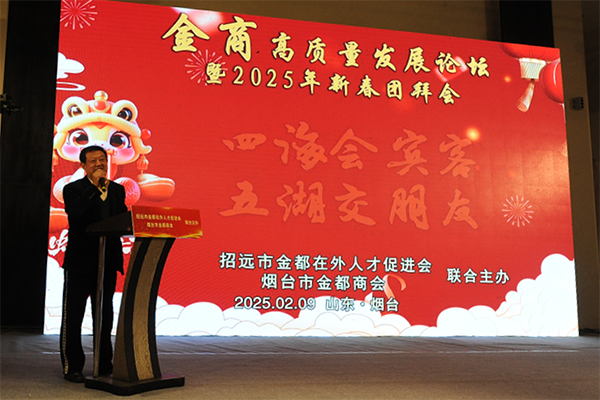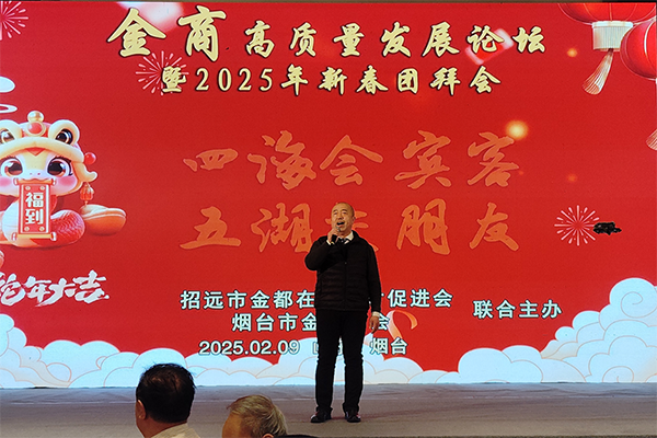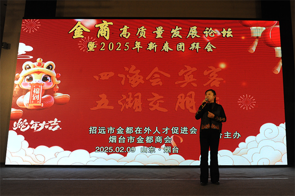 烟台市金都商会会长董山还回顾了2024年招远金都在外人才促进会和烟台市金都商会组织的多场域内外考察活动,并展望2025年将继续践行“走出去,请进来”的理念,鼓励会员企业拓展市场,学习先进经验,寻找合作机会。他还特别感谢了烟台市工商联和烟台市社会组织管理局的支持,表示未来商会将继续向“全国四好商会”和“全国5A级社会组织”目标迈进。