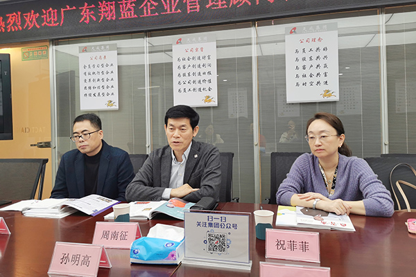 交流中,周南征总经理详细介绍了广东翔蓝企业管理顾问公司(以下简称“翔蓝公司”)的课程体系、学员们的评价及所取得的成果。他强调,翔蓝公司一直致力于为企业提供高质量的管理顾问服务,帮助企业解决实际经营中的难题,提升企业的核心竞争力。