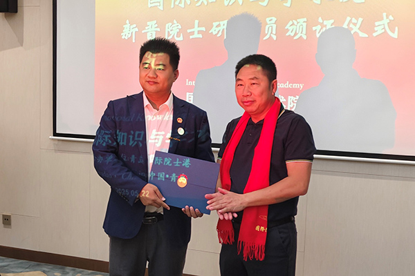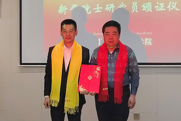 2025年5月22日下午,由国际院士专家联盟与院士强国工程办公室联合主办的“国际院士专家联盟新晋院士颁证、总部基地揭牌仪式暨院士专家座谈会”在山东省青岛市李沧区华澜大酒店圆满举行。鲁商联盟会常务副会长兼大湾区鲁商工委主席、广东省山东商会常务副会长兼深圳会长、欧洲自然科学院院士、世界生产力科学院院士孙明高应邀出席,并被授予国际知识与学术院院士称号。
