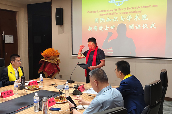 新晋院士孙明高在宣誓后发表感言,他表示:“感谢联盟授予我院士证书,这不仅仅是一项荣誉,更是一份沉甸甸的责任。我将以更高的标准要求自己,在科技、教育、人才发展等领域贡献更多力量。院士不仅是一个称号,更需要在实践中践行诺言。未来,我将努力做到‘道术合一、道法自然、学习合一、知行合一’,把理论与实践紧密结合,以优异成绩回报各位领导和院士的期望。同时,也真诚希望大家监督我、批评我,我会加倍努力,不负所托。”