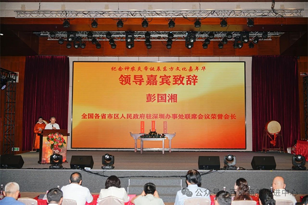 中国东方文化研究会粤港澳文化发展委员会会长冯丞疆、全国各省市区驻深圳办事处联席会议荣誉会长彭国湘分别代表主办单位致辞。他们表示,此次活动不仅是对炎帝精神的致敬,更是湾区文化交流与合作的新起点,希望以“开拓、共享、为民”的炎帝精神激发企业家与文化创造力,转化为湾区建设的务实行动。