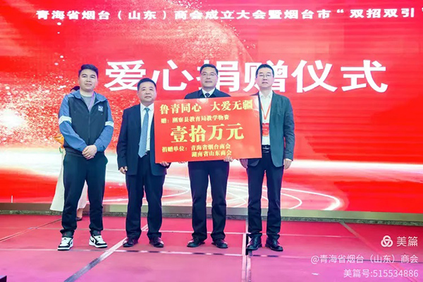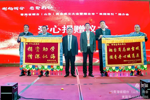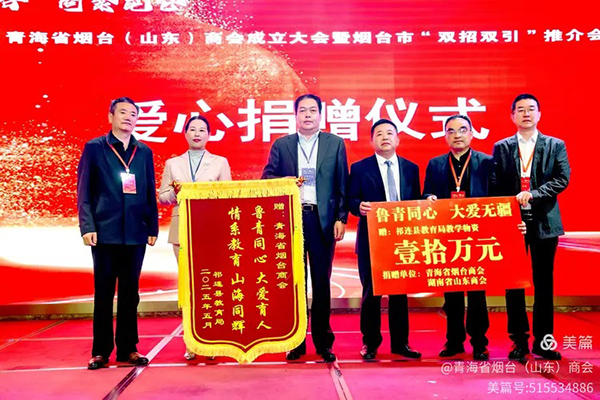 商会积极践行社会责任,在大会上发起了“鲁青同心,大爱无疆”公益行动。现场向青海省刚察县、祁连县教育局各捐赠了价值10万元的教学物资,以实际行动支持当地教育事业发展,赢得了与会嘉宾的高度赞誉与一致好评。